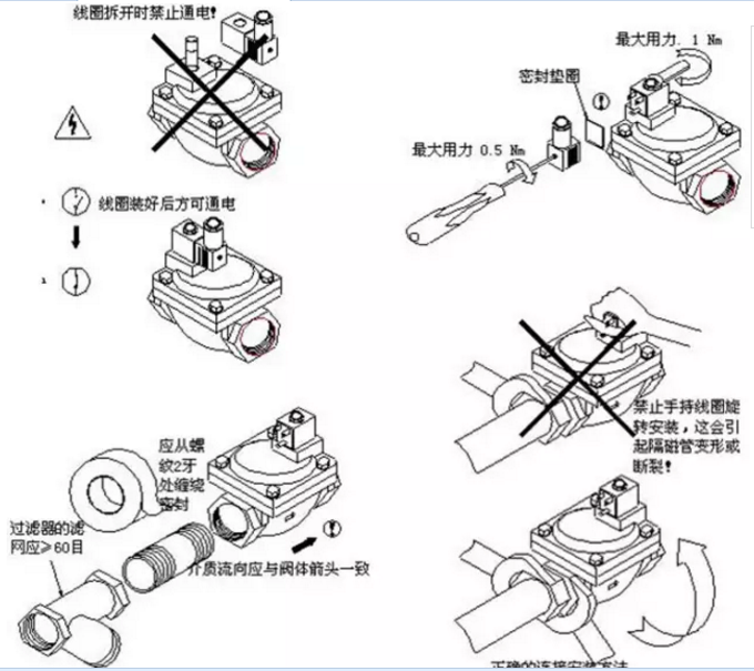 常用電磁閥正確安裝維護(hù)基本操作示意圖