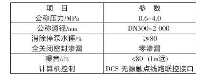 大口徑液控緩閉蝶閥設(shè)計(jì)要求 引言 大口徑液控緩閉蝶閥采用機(jī)械、液壓、電控、計(jì)算機(jī)一體化形式,可替代閘閥、止回閥、調(diào)節(jié)閥,節(jié)材、節(jié)能、節(jié)耗、節(jié)省占地空間;該閥門具有分階段開閥與關(guān)閥功能,因此,在開閥過程中能有效控制水擊,在關(guān)閉過程中能有效地消除停泵關(guān)閉水錘,保護(hù)管路與設(shè)備安全,同時(shí)在管路上安裝時(shí)因其具有伸縮功能安裝時(shí)非常便利。但傳統(tǒng)的閥門只具有單一的功能,閘閥只起閘閥的作用,止回閥只起止回閥的作用,在管路上開啟與關(guān)閉時(shí)不能夠有效控制水擊,因此液控緩閉蝶閥被電廠、水廠廣泛采用。 1 設(shè)計(jì)原理 1.1 閥門工況分析 液控緩閉蝶閥分重錘式和蓄能式兩種,使用工況主要有離心泵工況和水輪機(jī)工況等。 開閥離心泵工況(包括離心式混流泵):先啟動(dòng)泵,延遲預(yù)定時(shí)間后開閥。開閥水輪機(jī)工況:先開啟旁通閥平衡壓力,再開閥,后開啟水輪機(jī)。各種工況均要求在停機(jī)或停電的同時(shí)關(guān)閉閥門。 1.2 閥門類型 (1)重錘式。開閥時(shí),電磁閥換向,油泵啟動(dòng),液壓油經(jīng)流量控制閥、高壓膠管進(jìn)入油缸,推動(dòng)活塞將閥門開啟。開閥到位后自動(dòng)保壓系統(tǒng)啟動(dòng),電機(jī)繼續(xù)給保壓蓄能充壓,壓力達(dá)高壓力設(shè)定點(diǎn)后停機(jī)。旋轉(zhuǎn)流量控制閥手輪可以調(diào)整開閥時(shí)間。 關(guān)閥時(shí),電磁閥換向,油缸內(nèi)的壓力油經(jīng)快、慢關(guān)節(jié)流閥、高壓膠管、電磁閥回到油箱,重錘落下,蝶板旋轉(zhuǎn)關(guān)閥,迅速切斷前約70%行程的大部分水流,后30%行程則緩慢關(guān)閉??炻P(guān)角度及各階段時(shí)間可以根據(jù)管道實(shí)際工況進(jìn)行調(diào)節(jié),有效消除管道水錘。 (2)蓄能式。開閥時(shí),電磁閥換向,蓄能器釋放能量,液壓油經(jīng)調(diào)速閥,單向閥及高壓膠管進(jìn)入油缸,推動(dòng)活塞運(yùn)動(dòng),閥門按調(diào)定的程序開啟,蝶板開至機(jī)械限位調(diào)定全開位置。 關(guān)閥時(shí),電磁閥換向,蓄能器釋放能量,推動(dòng)油缸反向動(dòng)作帶動(dòng)蝶板按調(diào)定程序關(guān)閉閥門至全關(guān)位置。 啟閉過程中,當(dāng)系統(tǒng)油壓低于壓力控制器調(diào)定下限值時(shí),油泵自動(dòng)開啟,給蓄能器蓄能,當(dāng)蓄能器能量貯存至壓力控制器調(diào)定上限值時(shí),油泵停止運(yùn)轉(zhuǎn)。 電器與液壓部分組成控制系統(tǒng),可實(shí)現(xiàn)泵閥聯(lián)動(dòng)、遠(yuǎn)距離控制、PLC編程控制操作,提供DCS觸點(diǎn)接口,供計(jì)算機(jī)管理。 2 設(shè)計(jì)主要技術(shù)性能參數(shù)(見表1) 表1 技術(shù)性能參數(shù)