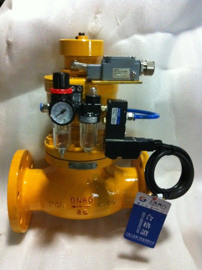 液氨專用氣動緊急切斷閥作用原理及結(jié)構(gòu)說明: 1、單作用式工作原理:閥門在無外壓力操作情況下,閥瓣處于常閉狀態(tài),在管道或貯罐系統(tǒng)上使用時,靠電源和氣源的壓力將閥門打開,在氣路的壓力使用下閥門處于開啟狀態(tài),當(dāng)需要關(guān)閉閥門時,可將電源或氣源壓力泄掉,閥門即自動關(guān)。 2、閥瓣關(guān)閉時,壓力是依靠打開泄壓閥來實現(xiàn)。 3、常開式可采用單作用代替或按要求訂做。 4、雙作用式工作原理:當(dāng)控制器按事先編好的程序?qū)δ硞€電磁換向閥輸出一個電信號,該電磁換向閥動作,使帶壓儀表氣源通過電磁換向閥的切換進入氣動執(zhí)行機構(gòu)的氣缸下腔推動活塞向上運動,活塞帶動閥桿,閥桿提動閥芯使閥門開啟,切斷換向閥電信號,使活塞反向運動使閥門關(guān)閉,這種閥門配置稱為常閉式。 .jpg)