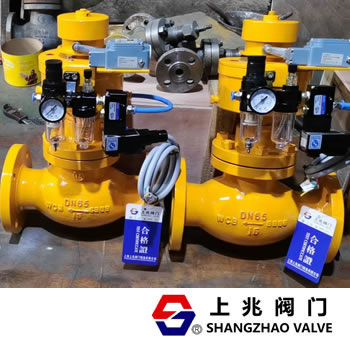QDQ421F-25天然氣緊急切斷閥--產(chǎn)品概述 QDQ421F-25 天然氣緊急切斷閥分為常開(kāi)式和為常閉式,安裝在液氨,燃?xì)鈨?chǔ)罐/管道出口處緊急時(shí)能夠快速切斷的閥門(mén),利用電磁閥來(lái)控制閥門(mén)的開(kāi)啟-關(guān)閉。廣泛用于燃?xì)?氨氣或弱腐蝕性氣體貯罐的安全保護(hù)閥門(mén)。天然氣緊急切斷閥由多彈簧氣動(dòng)薄膜執(zhí)行機(jī)構(gòu)或浮動(dòng)式活塞執(zhí)行機(jī)構(gòu)與調(diào)節(jié)閥組成,電磁閥線圈可接收泄露儀器的信號(hào),控制工藝管道內(nèi)流體的切斷、接通或切換。切斷閥內(nèi)結(jié)構(gòu)裝有低熔點(diǎn)(易熔合金)的塞子,在 出現(xiàn)事故時(shí)因溫度升增高易熔化泄壓來(lái)迅速關(guān)閉貯罐的出入口來(lái)保證貯罐系統(tǒng)的安全。氣缸開(kāi)啟壓力為≥0.3-0.6Mpa,氣缸的日常工作壓力,不得低于0.4MPa,保證閥門(mén)的正常工作。常開(kāi)型天然氣緊急切斷閥;具有極佳的技術(shù)性能,低負(fù)荷損失和高可靠性,與遠(yuǎn)距離氣源配套使用,利用氣源控制閥門(mén)的關(guān)閉,以便在管道或儲(chǔ)罐上發(fā)生意外情況時(shí),工作人員迅速通過(guò)控制室觸動(dòng)開(kāi)關(guān),電磁閥瞬間通電,氣源快速通過(guò)關(guān)閉切斷閥。 QDQ421F-25天然氣緊急切斷閥--性能規(guī)范: