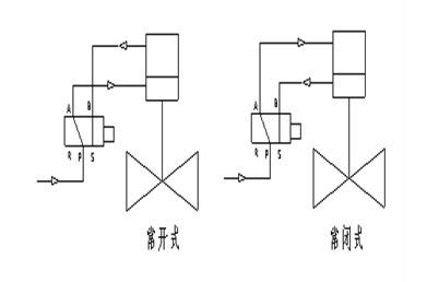 當(dāng)控制器按事先編好的程序?qū)δ硞€(gè)氣源換向閥輸出一個(gè)信號(hào),該換向閥動(dòng)作,使帶壓儀表氣源通過(guò)換向閥的切換進(jìn)入氣動(dòng)執(zhí)行機(jī)構(gòu)的氣缸上腔或下腔,推動(dòng)活塞運(yùn)動(dòng)使閥們開(kāi)啟或關(guān)閉。閥門(mén)的操作連接方式(如圖所示)。