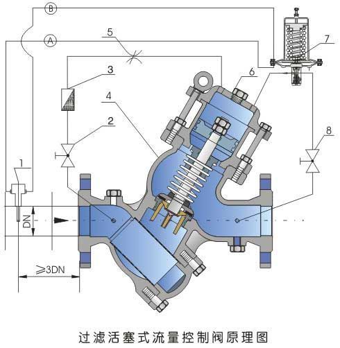 水利控制閥就是利用管道自身的介質(zhì)壓力控制的閥門(mén) ![]() 水利控制閥就是利用管道自身的介質(zhì)壓力控制的閥門(mén),水力控制閥由一個(gè)主閥及其附設(shè)的導(dǎo)管﹑導(dǎo)閥﹑針閥﹑球閥和壓力表等組成。根據(jù)使用目的﹑功能及場(chǎng)所的不同可演變成遙控浮球閥﹑減壓閥﹑緩閉止回閥﹑流量控制閥﹑泄壓閥。 水利控制閥--選用要點(diǎn): ( 1 )工程式中應(yīng)用的水力控制閥是經(jīng)過(guò)制造廠檢驗(yàn)合格,各種標(biāo)識(shí)齊全,技術(shù)資料符合要求的產(chǎn)品。 ( 2 )根據(jù)功能要求,選擇閥門(mén)種類(lèi),再根據(jù)管道輸送介質(zhì)、溫度、建筑標(biāo)準(zhǔn)和業(yè)主 要要求 等,確定閥門(mén)的閥體和密封部位的材質(zhì)。常用的閥 體材料有鑄鐵 、銅鐵、銅、塑料等。常用的密封面和襯里材料有銅合金、塑料、鋼、硬質(zhì)合金、橡膠等。閥 體材料應(yīng)與管道材料相匹配。 ( 3 )閥門(mén)的公稱(chēng)壓力有0.6、1.0、1.6、2.5和4.0MPa等不同級(jí)別,管道輸送的介質(zhì),其工作壓力應(yīng)小于閥門(mén)的公稱(chēng)壓力值。 ( 4 )工程中水利控制閥的設(shè)置應(yīng)當(dāng)有足夠的空間,以便管理、操作、安裝和維修,并應(yīng)符合管路對(duì)閥門(mén)的要求。 ( 5 )管路采用法蘭連接時(shí),應(yīng)采用法蘭連接的水力控制閥;管路采用溝槽式連接時(shí),應(yīng)采用溝槽式連接的水利控制閥。 ( 6 )水利控制閥應(yīng)設(shè)置在介質(zhì)單向流動(dòng)的管路上。 ( 7 )水利控制閥主閥體上的箭頭方向必須與管路系統(tǒng)流向一致。 ( 8 )接水利控制閥管段不 應(yīng)有氣堵 、氣阻現(xiàn)象。在管網(wǎng)最高位置 等存氣段 應(yīng)設(shè)置自動(dòng)排氣閥。 ( 9 )閥門(mén)水平安裝時(shí),閥蓋、閥桿應(yīng)朝上。垂直安裝時(shí),閥蓋、閥桿應(yīng)朝外。 ( 10 )閥門(mén)安裝前應(yīng)做強(qiáng)度和嚴(yán)密性試驗(yàn)。 ( 11 )閥門(mén)的強(qiáng)度和嚴(yán)密性試驗(yàn)應(yīng)符合以下規(guī)定。 A、閥門(mén)的強(qiáng)度試驗(yàn)壓力為公稱(chēng)壓力的1.5倍; B、閥門(mén)的嚴(yán)密性試驗(yàn)壓力為公稱(chēng)壓力的1.5倍; C、試驗(yàn)壓力在試驗(yàn)持續(xù)時(shí)間內(nèi)應(yīng)保持不變,且殼體填料及閥瓣密封面無(wú)滲漏; D、閥門(mén)試驗(yàn)持續(xù)時(shí)間按上表。 水利控制閥--原理構(gòu)造: 遙控浮球閥應(yīng)設(shè)置在水池或水箱的進(jìn)水管道上,宜水平安裝,閥蓋朝上。其控制導(dǎo)管與浮球設(shè)置應(yīng)符合以下要求: 水利控制閥是以管道介質(zhì)壓力為動(dòng)力,進(jìn)行啟閉、調(diào)節(jié)的閥門(mén)。它由一個(gè)主閥和附設(shè)的導(dǎo)管、針閥、球閥和壓力表等組成、根據(jù)使用的目的、功能場(chǎng)所的不同,可演變成遙控浮球 閥、減壓閥、緩閉止回閥、流量控制器、泄壓閥、水力電動(dòng)控制閥、緊急關(guān)閉閥等。 導(dǎo)閥隨介質(zhì)的液位和壓力的變化而動(dòng)作,由于導(dǎo)閥種類(lèi)很多,可以單獨(dú)使用或幾個(gè)組合使用, 就可以使主閥獲得對(duì)水位和水壓及流量等進(jìn)行單獨(dú)和復(fù)合調(diào)節(jié)的功能。但主閥閥體類(lèi)似截止閥,閥門(mén)全開(kāi)時(shí),其壓力損失比其他閥門(mén)要大得多,且各個(gè)開(kāi)度損失系數(shù)越是與全閉狀 態(tài)接近,越是劇增,閥門(mén)口徑越大就越顯著。 YQ98001型過(guò)濾活塞式可調(diào)減壓閥--原理: YQ98001型過(guò)濾活塞式可調(diào)減壓閥由比托管傳遞壓差信號(hào)給流導(dǎo)閥, 限流閥和針閥執(zhí)行兩路控控制. 來(lái)控制主閥活塞上腔的壓力. 通過(guò)限流導(dǎo)閥調(diào)節(jié)摞栓的調(diào)節(jié). 使閥后流量達(dá)到設(shè)定值; 活塞下腔有節(jié)流孔與下游相通. 可綬沖閥門(mén)的關(guān)閉, 主閥兩端壓力差是閥門(mén)啟. 閉的驅(qū)動(dòng)能源。主要用于空調(diào). 給排水. 消防和各類(lèi)工礦企業(yè)等供水管網(wǎng)口需要過(guò)濾而且對(duì)流量實(shí)現(xiàn)控制的場(chǎng)所和工況。能將上游壓力降低至所設(shè)置的下游壓力,無(wú)論怎樣改變上游的壓力和流量,其預(yù)先設(shè)定的下游壓力均能夠保持不變。 產(chǎn)品外觀圖