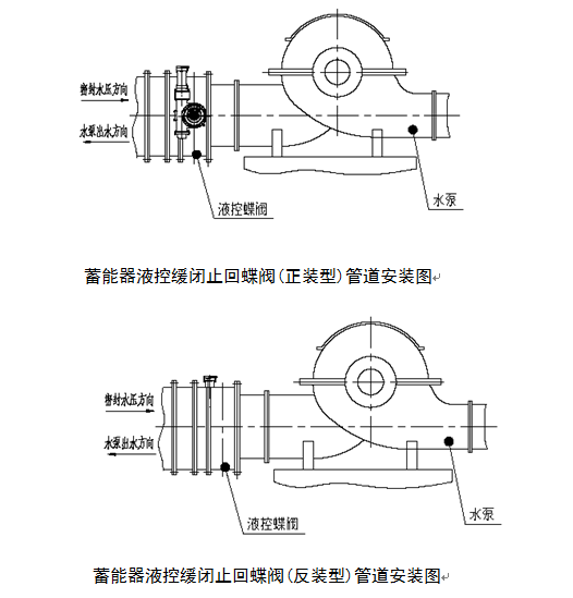產(chǎn)品介紹 蓄能式液控緩閉止回蝶閥具備水泵出口的閘閥切斷功能和止回閥的止回功能,且集機(jī)、電、液系統(tǒng)于一體,占地面積小。蓄能器為閥門啟閉提供主動力源,可現(xiàn)場操作,也可微機(jī)集中控制;主要安裝于水電站、水輪機(jī)進(jìn)口,用作水輪機(jī)進(jìn)口閥或安裝于水利、電力、給排水等各類泵站的水泵出口。蓄能器式液控緩閉止回蝶閥由蝶閥、傳動機(jī)構(gòu)、液壓站、電控箱等四部分組成。 一、蓄能式液控止回蝶閥--產(chǎn)品簡介 : 蓄能液控緩閉止回蝶閥是目前國內(nèi)外管路控制設(shè)備,主要安裝于水電站水輪機(jī)進(jìn)口,用作水輪機(jī)進(jìn)口閥;或安裝于水利、電力、給排水等各類泵站的水泵出口,替代止回閥和閘閥的功能。工作時,閥門與管道主機(jī)配合,按照水力過渡過程原理,通過預(yù)設(shè)的啟閉程序,有效消除管路水錘實(shí)現(xiàn)管路的可靠截止,起到保護(hù)管路系統(tǒng)安全的作用。 1、可取代水泵出口處原電動閘閥和止回閥的功能,且機(jī)、電、液系統(tǒng)集成為一個整體,減少占地面積及基建投資。 2、電液控制功能齊全,無需另外配置即可以作為一個獨(dú)立的系統(tǒng)單機(jī)就地調(diào)試、控制;也可以作為集散性控制系統(tǒng)(DCS)的一個設(shè)備單元,通過1/0通道由中央計算機(jī)進(jìn)行集中管理,與水泵、水輪機(jī)、旁通閥及其他管道設(shè)備實(shí)現(xiàn)聯(lián)動操作;并配有手動功能,無動力電源時也可以實(shí)現(xiàn)手動開、關(guān)閥,滿足特殊工況下的閥門調(diào)試、控制要求。 3、可控性好,調(diào)節(jié)范圍大、適應(yīng)性強(qiáng)。電液控制系統(tǒng)設(shè)有多處調(diào)節(jié)點(diǎn),可以按不同的管道控制要求進(jìn)行啟閉程序設(shè)置保證在滿足開、關(guān)閥條件時,閥門能夠自動按預(yù)先設(shè)定的時間、角度開啟和分快、慢二階段關(guān)閉。并能實(shí)現(xiàn)無電關(guān)閥,有效消除破壞性水錘,防止水泵和水輪機(jī)組飛逸事故的發(fā)生,降低管網(wǎng)系統(tǒng)的壓力波動,保障設(shè)備的安全可靠運(yùn)行。 4、主閥密封副為三偏心金屬密封或雙偏心橡膠密封結(jié)構(gòu),啟閉輕松、密封可靠;并有一道額外加大的偏心,使閥門具有良好的自關(guān)閉、自密封性能。中、小口徑蝶板設(shè)計成流線型平板結(jié)構(gòu),大口徑蝶板設(shè)計面雙平板桁架工結(jié)構(gòu),排擠小,水流平順,閥門流阻系數(shù)僅為0.1~0.6,遠(yuǎn)小于止回閥的流阻系數(shù)(1.7~2.6),節(jié)能效果明顯。 二、蓄能式液控止回蝶閥--參數(shù)性能: 產(chǎn)品名稱:蓄能式液控緩閉止回蝶閥 所屬系列:蓄能式液控閥門 公稱通徑:DN100~DN4000 公稱壓力:PN2.5~PN64 適用介質(zhì):清水、泥沙水、海水、水庫水、油品、氣體等 介質(zhì)溫度:≤80℃ 開閥時間:3~120秒(可調(diào)) 關(guān)閥時間:3~120秒(可調(diào)) 動力電源:AC380V 控制電源:AC220V、DC220V、DC110V或DC24V 遠(yuǎn)程控制:開閥、關(guān)閥、停止 遠(yuǎn)程信號:無源的開關(guān)量信號、4~20mA模擬量閥位反饋信號 三、蓄能式液控止回蝶閥--產(chǎn)品結(jié)構(gòu)說明: 1、本產(chǎn)品主要由閥門本體、齒輪齒條傳動箱、液壓裝置、電氣控制箱等部分組成 2、閥門本體由閥體、蝶板、閥桿、滑動軸承、密封件等零件組成。 3、蓄能器式液控緩閉止回蝶閥一般采用臥式布置,也可根據(jù)用戶要求采用立式布置。 4、傳動機(jī)構(gòu)主要由齒輪箱、齒輪、齒條等連接、傳動件組成,是液壓動力開關(guān)閥門的主要執(zhí)行機(jī)構(gòu)。 5、臥式布置時,傳動機(jī)構(gòu)一般采用正向安裝;也可以根據(jù)用戶要求采用反向安裝(即傳動機(jī)構(gòu)位于閥門的另一側(cè))。 6、液壓站包括油泵機(jī)組、手動泵、蓄能器、電磁閥、溢流閥、流量控制閥、截止閥、液壓集成塊、油箱等部件。 7、蓄能器為閥門啟閉提供主要動力源、流量控制閥調(diào)節(jié)開關(guān)時間、溢流閥作為系統(tǒng)的安全閥、截止閥用作整個系統(tǒng)的卸壓。 8、液壓系統(tǒng)電磁的特征為:電磁閥得電蝶閥工作,失電蝶閥保位鎖定;采用其它作用型式應(yīng)在訂貨時說明。 9、液壓系統(tǒng)與閥門本體可以是整體式安裝,也可以是分體式安裝。用戶未作特殊說明時為分體式安裝。 四、工作原理及操作說明: 本閥電器控制系統(tǒng)主邏輯元件為PLC智能控制型,分以下幾種工況: 開閥離心泵工況(包括離心混流泵):先啟動泵,延長預(yù)定時間后開閥,或泵閥同時開啟。 開閥軸流泵工況(包括軸流混流泵):泵閥同時開啟,或開閥至一定角度,再啟動泵。 4.1自動保壓 合上空氣開關(guān),接通油泵電源AC380V、控制不間斷電源DC24V電源,電源指示燈亮?!稗D(zhuǎn)換開關(guān)”旋到控制源右邊位置,控制系統(tǒng)自動保壓單元自動啟動,油泵自動啟動給系統(tǒng)充壓。當(dāng)壓力達(dá)到壓力繼電器高壓(15MPa)時,油泵停機(jī)。以后閥門操作無論處于什么狀態(tài),自動保壓功能都有效。即當(dāng)系統(tǒng)壓力低于壓力繼電器設(shè)定的低壓12MPa時,油泵自動啟動;當(dāng)系統(tǒng)壓力增至高壓設(shè)定15MPa時,油泵自動停機(jī)。 蓄能器存儲的能源足夠動力電源故障,油泵不能啟動時,一次全程開閥或關(guān)閥。將轉(zhuǎn)換開關(guān)旋至