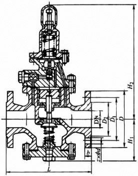 四、Y43H蒸汽減壓閥--外形及結(jié)構(gòu)尺寸(mm):