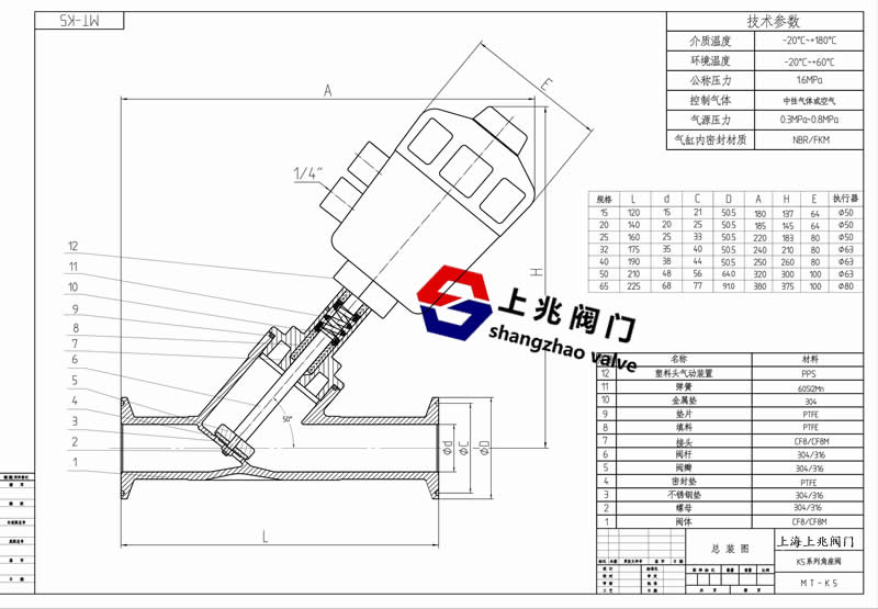 產(chǎn)品介紹 快裝氣動角座閥(塑料頭)--工作原理: 在非工作狀態(tài)時,由于彈簧力作用,閥門常閉(開)。當(dāng)執(zhí)行器活塞被壓縮氣體作用時,閥門打開(關(guān)閉)。雙作用形式靠壓縮氣體控制閥門開關(guān)。 快裝氣動角座閥(塑料頭)--應(yīng)用范圍: 啤酒飲料灌裝設(shè)備 制藥及醫(yī)療設(shè)備 印染紡織 化工行業(yè) 氣體工業(yè) 高溫滅菌 發(fā)泡機(jī)械 水/污水處理 快裝氣動角座閥(塑料頭)--特點: 流量大,流阻小,無水錘 Y型設(shè)計,增加30%流量 超長使用壽命 閥桿自動校正,自潤滑,免維護(hù) 氣缸采用不銹鋼材質(zhì),在惡劣環(huán)境中更加優(yōu)秀,可360°旋轉(zhuǎn)。 快裝氣動角座閥(塑料頭)--技術(shù)參數(shù): 管道壓力:Max1.6Mpa(232psi) 控制壓力:0.3-0.8Mpa(43.5-116psi) 控制介質(zhì):中性氣體或空氣 閥體材料:CF8M/CF8(SS316,SS304) 密封材料:聚四氟乙烯 氣缸材料:塑料PPS 氣缸尺寸:27mm,32mm,40mm,50mm,63mm, 80mm,100mm,125mm 適用介質(zhì):水,酒精,油,染料,蒸汽,中性氣體或液體,有機(jī)溶劑,酸堿溶液 介質(zhì)溫度:-10℃-+180℃,25℃-+220℃ 環(huán)境溫度:-10℃-+80℃ 控制形式:單作用常閉,常開,雙作用常閉,雙作用自由態(tài) 連接形式:螺紋式,焊接式,法蘭式,快裝式 快裝氣動角座閥(塑料頭)圖紙: ![]() 上兆閥門其他產(chǎn)品: 閘 閥 截止閥 球 閥 蝶 閥 緊急切斷閥 電磁閥 水力控制閥 止回閥 刀型閘閥 旋塞閥 過濾器 減壓閥 疏水閥 隔膜閥 調(diào)節(jié)閥 阻火器 呼吸閥 燃?xì)忾y門 冶金閥門 | ||