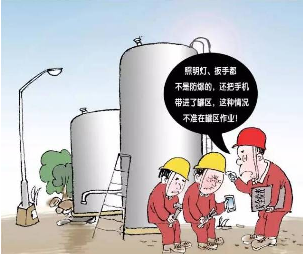 本條規(guī)定了油氣加工、調(diào)和過程中各種添加劑、助劑使用安全管理要求。 在添加使用前要了解添加劑、助劑的物化性質(zhì),并進(jìn)行風(fēng)險評估,制定相應(yīng)的控制措施和應(yīng)急預(yù)案,操作過程中要使用專門的加劑系統(tǒng),嚴(yán)格履行操作規(guī)程。 8.嚴(yán)禁在油氣罐區(qū)使用非防爆照明、電氣設(shè)施、工器具和電子器材 本條主要規(guī)定了油氣罐區(qū)防爆器材的使用要求。油氣罐區(qū)儲存的介質(zhì)一般都具有易燃易爆等特點,在油氣罐區(qū)使用非防爆工具、電氣設(shè)施、通訊器材等,存在較大安全隱患,容易引發(fā)事故。 9.嚴(yán)禁培訓(xùn)不合格人員和無相關(guān)資質(zhì)承包商進(jìn)入油氣罐區(qū)作業(yè),未經(jīng)許可機(jī)動車輛及外來人員不得進(jìn)入罐區(qū)